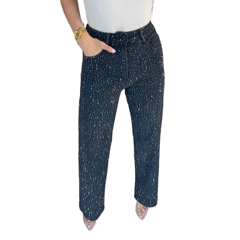 Women's New High Waist Casual Jeans for Summer Street Style Slim Fit with Full Diamond Embroidery Solid Design Denim Fabric