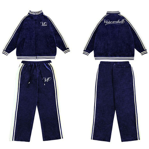 Hot Sale Custom Thick Velvet Cotton Knitting Long Sleeve Custom LOGO Leisure Sports Two-pieces Set Tracksuit for Men